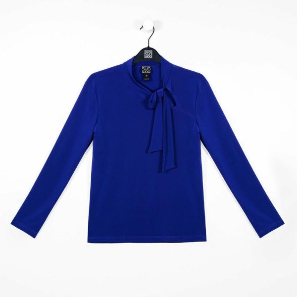 Women Asymmetrical Bow Tie-Neck Top – Cobalt – Final Sale! | Clara Sunwoo Tops + Tunics