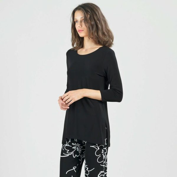 Tie you look up in a bow with our Back Tie Side Vent Tunic! This tunic features a scoop neckline, 3/4 length sleeves, a charming back tie detail with a shark bite hemline, and dual side vents that create a flattering silhouette.