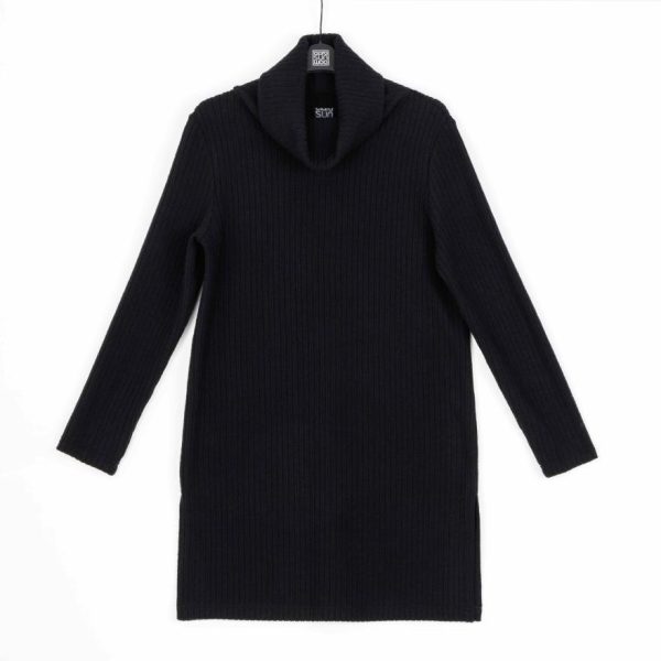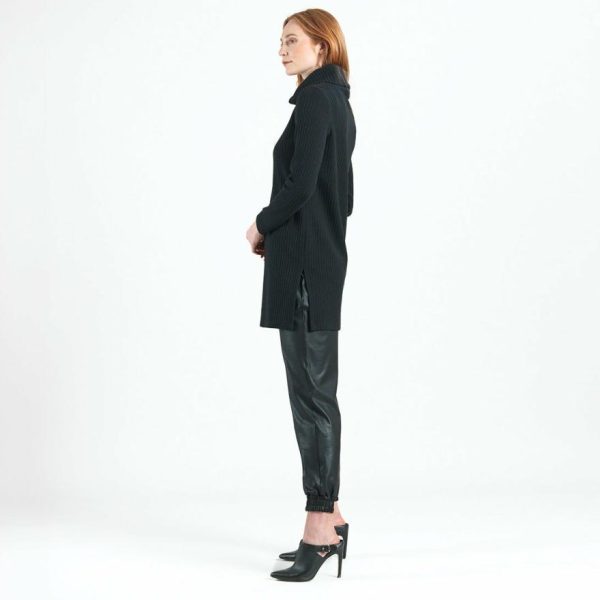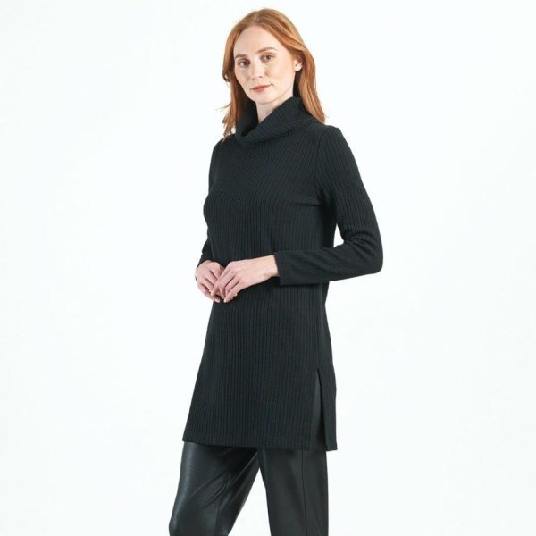 Women Chunky Ribbed – Cowl Turtleneck Sweater Tunic – Black – Final Sale! | Clara Sunwoo Sweaters