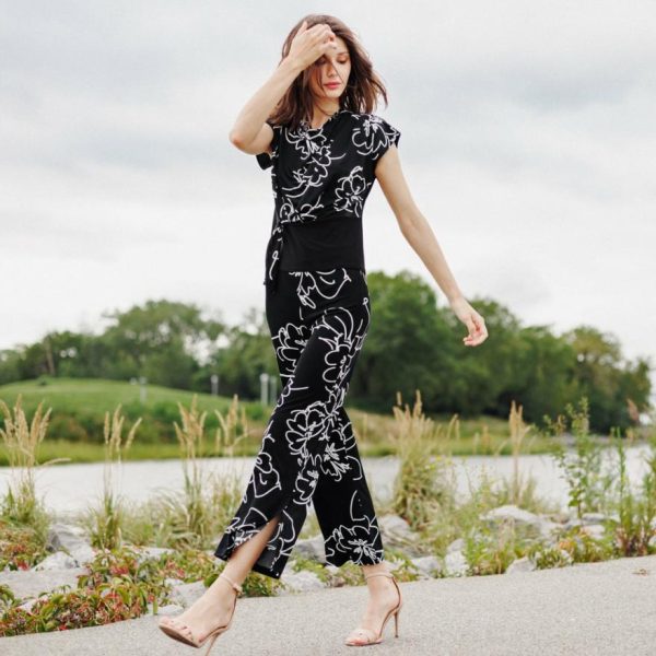 Our signature fabric meshes with our crepe knit fabric that has an airy, open weave texture. Made with a delicate, soft, grainy finish. This fabric is designed to have a sophisticated, 3D-like effect, and is lightweight enough to catch any cool breeze.