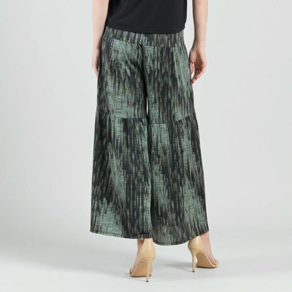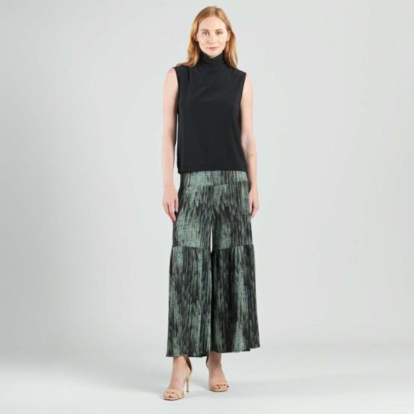 Women Crinkle Pleat Knit – Tiered Skirt-Pant – Water Ripple-Olive | Clara Sunwoo Pants + Skirts