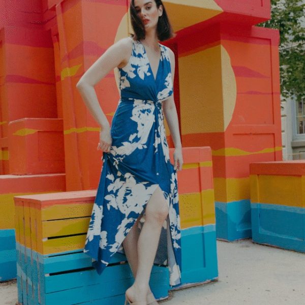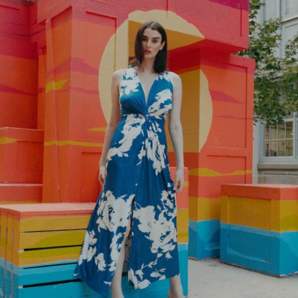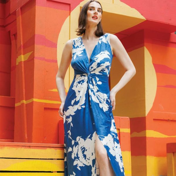 Our Dreamy Floral Crushed Silk Center Slit Maxi Dress is what sweet dreams are made of! This stunning sleeveless dress features a deep v-neckline, wide shoulder coverage, and a knotted twist bodice detail, that accentuates the waist while creating a flattering draped silhouette, with a 24The model is 5’9″ wearing Extra Small (4/6)