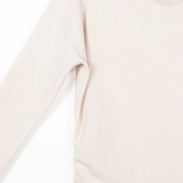 Ride the fashion wave in our French Terry-Like Knit Boat Neck Side Ruched Sweater Top! This style has a boat neckline that can also be worn off one shoulder, long sleeves, side ruched details that accentuate the natural curve, and a straight hemline.