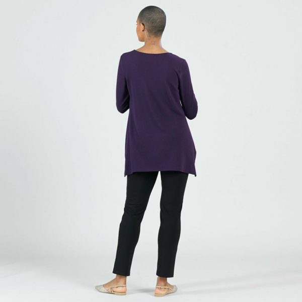 This tunic is designed to provide an elegant, yet relaxed fit. Cut true to size with a slightly flared silhouette, it also features an ample fit throughout the body but with a narrow bust, so customers may want to consider sizing up for comfort.