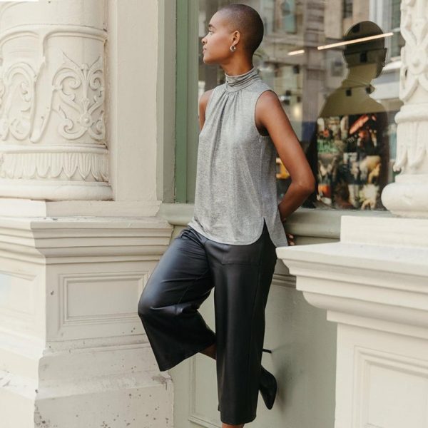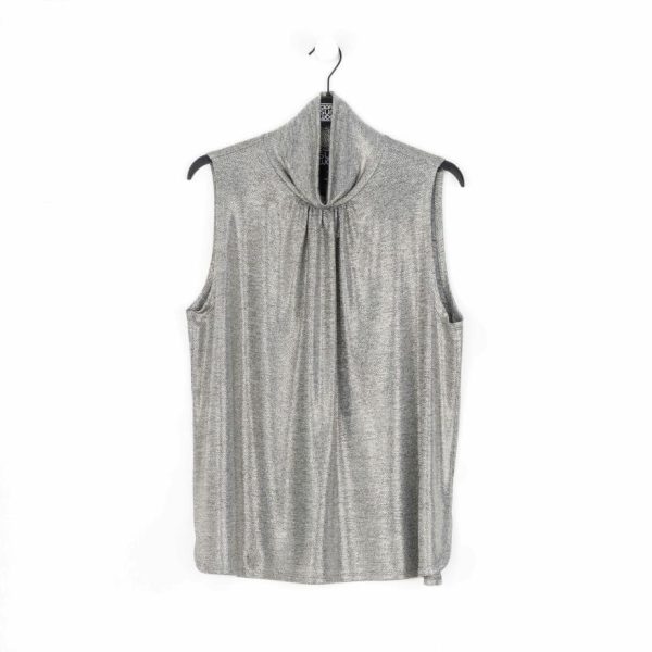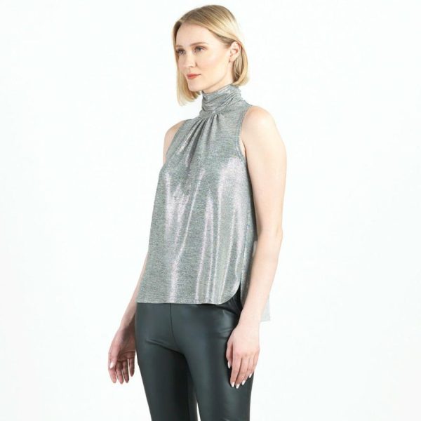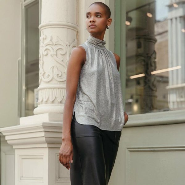 You’ll feel like you belong on the silver screen when wearing our glamorous Glimmer Lamé Sleeveless Pleated Detail Tank! This sleeveless, bra-friendly style features a mock neckline, and feminine center pleated detail that begins at the neck and transitions to a soft-draped body, with a 3The model is 5’9″ wearing Extra Small (4/6)