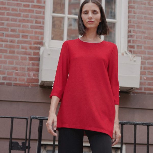 Having a style that allows you to shine in any room is the hope, and our Glitter Foil Pearl Cuff Asymmetrical Reverse Hi-Low Tunic does just that! This style features a v-neckline, half sleeves with a 2The model is 5’9″ wearing Extra Small (4/6)