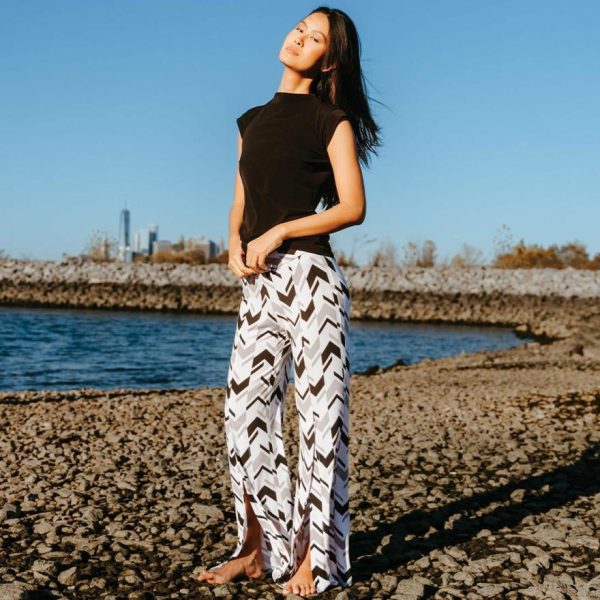 Don’t pass up our Chevron Stripe Kick Front High Slit Pant… you’ve earned it! This pant features a 2” pull-on soft waistband with flared hem and a sleek 20The model is 5’9″ wearing Extra Small (4/6)