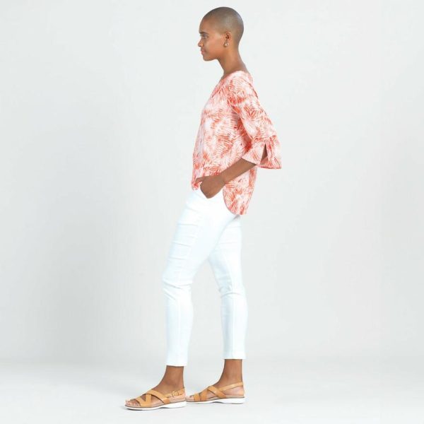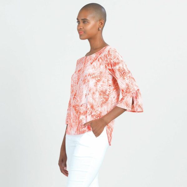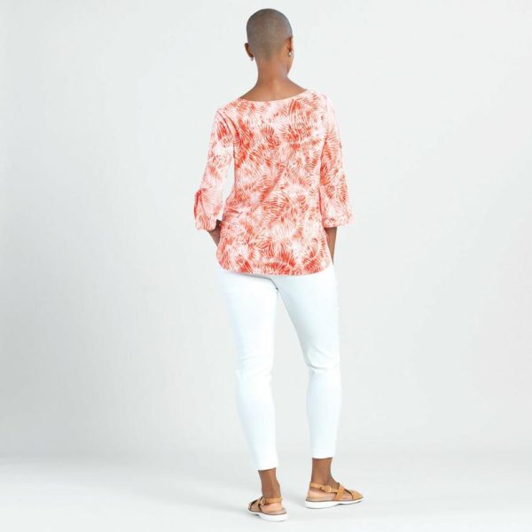 Our Palm Branch Light Knit Tie Cuff Top will keep you in a vacation mood all year round! This top features a round neckline, elbow-length sleeves with tie-able flared cuff details, and a slight hi-low scalloped hemline.