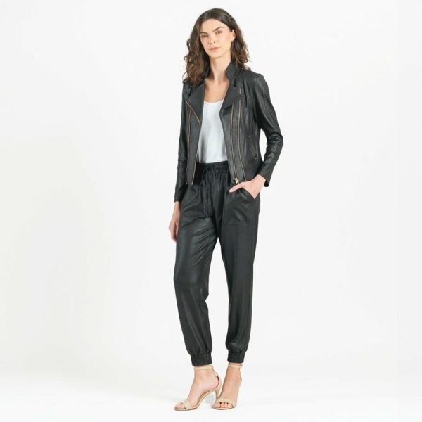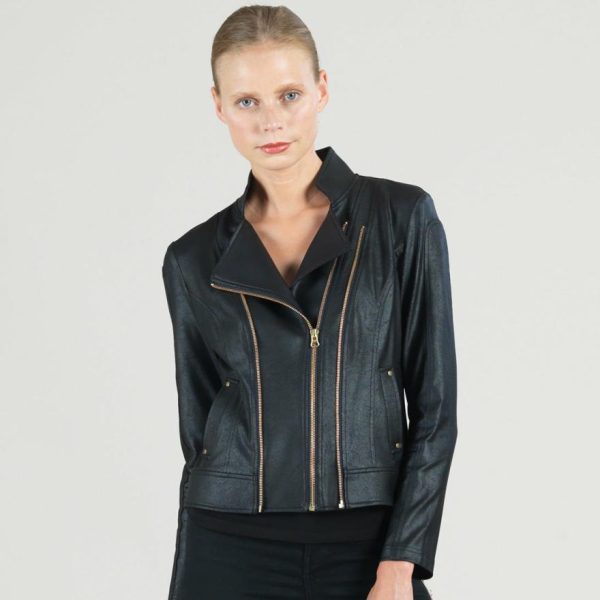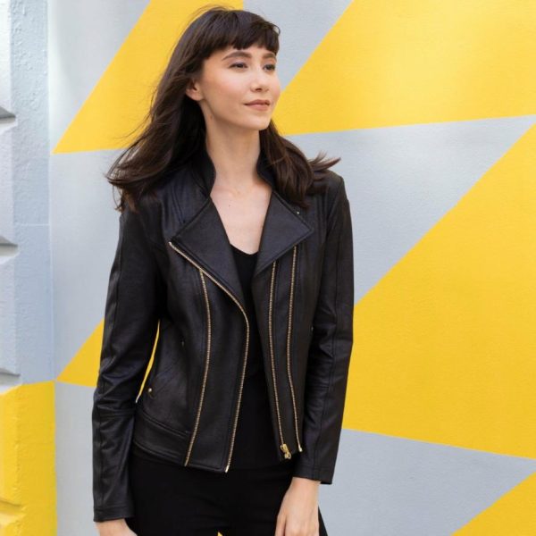 Women Liquid Leather™ Double Zip Pocket Jacket – Black | Clara Sunwoo Jackets + Cardigans