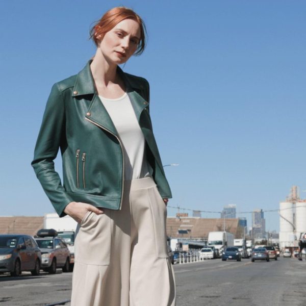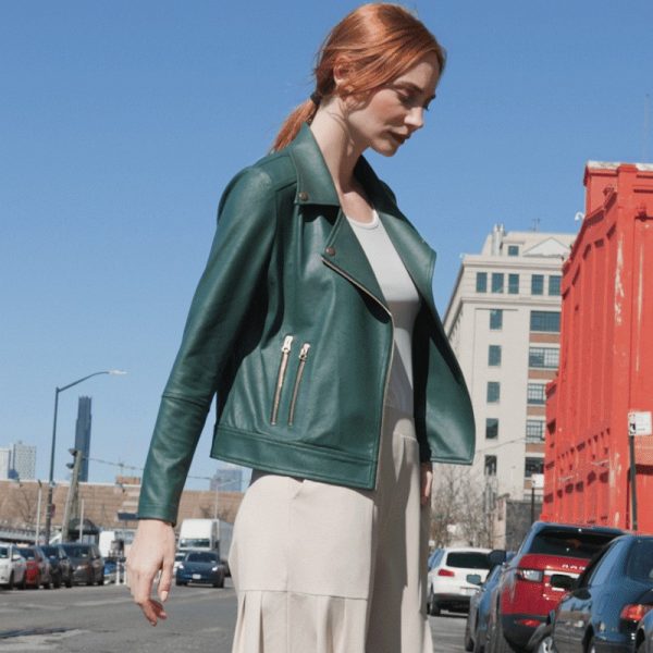 Women Liquid Leather™ Moto Zip Jacket – Hunter Green | Clara Sunwoo Jackets + Cardigans