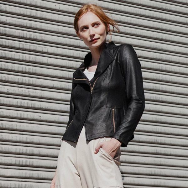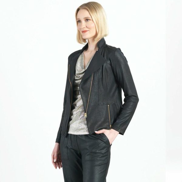Experience our unique faux Liquid Leather Signature Jacket which is made from our beautiful signature stretch knit, extremely lightweight soft The model is 5’9″ wearing Extra Small (4/6)