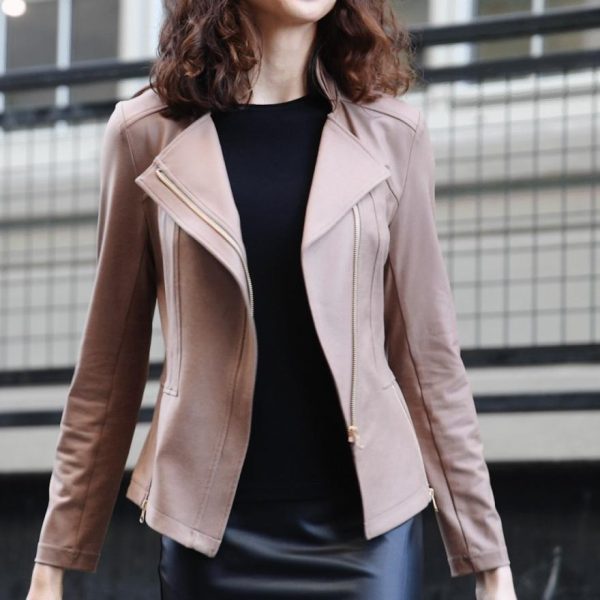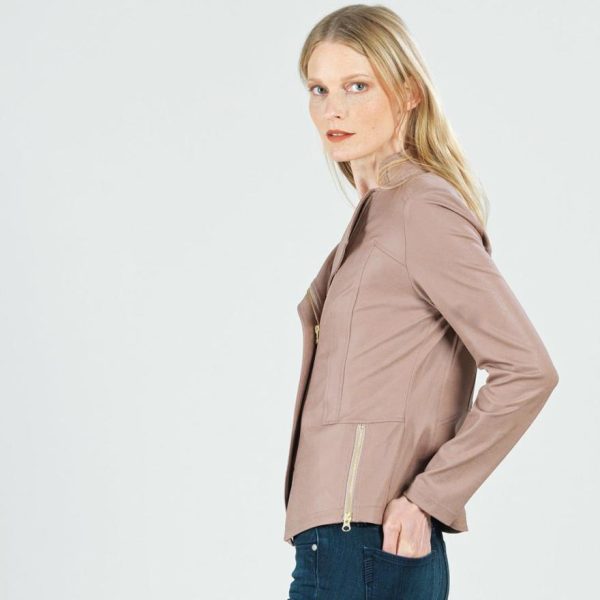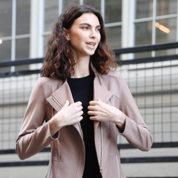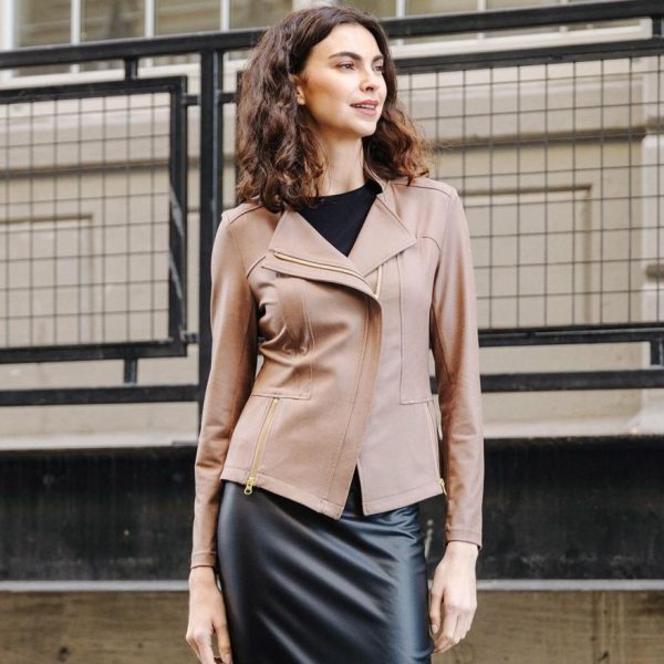 Let our faux Liquid Leather Signature Jacket pour all over you as it is made from our beautiful signature stretch knit, extremely lightweight soft The model is 5’9″ wearing Extra Small (4/6)