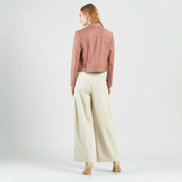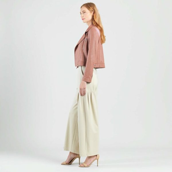 Women Liquid Leather™ Zip Cuff Moto Waist Jacket – Tan | Clara Sunwoo Spring Collection