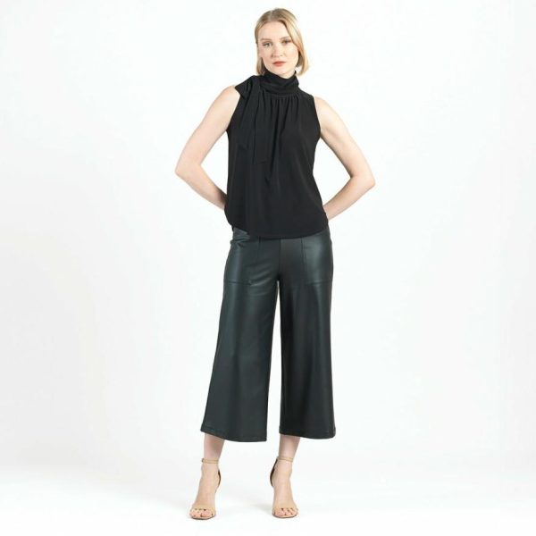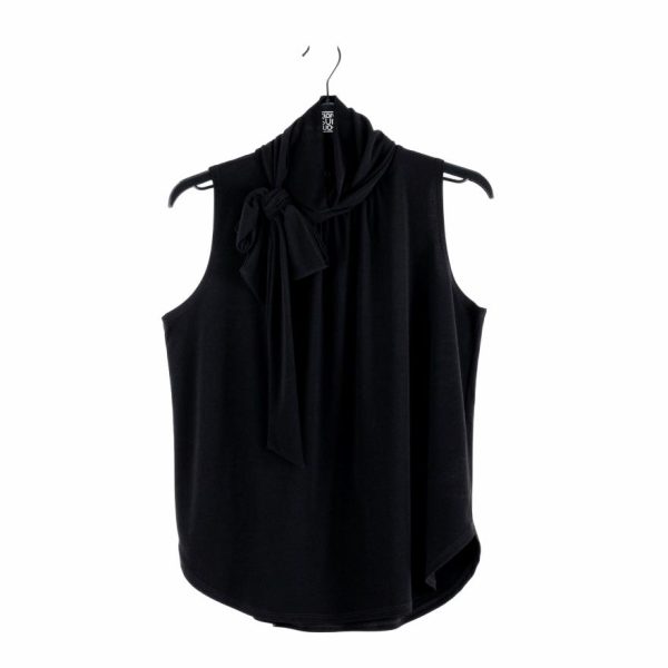 Add a touch of elegance and versatility to your wardrobe with our Mock Neck-Tie Detail Top! This sleeveless, bra-friendly style features a charming mock neck-tie detail that can be styled multiple ways, and feminine micro-pleats that begin at the neck and transition to a soft-draped body, with a 3The model is 5’9″ wearing Extra Small (4/6)