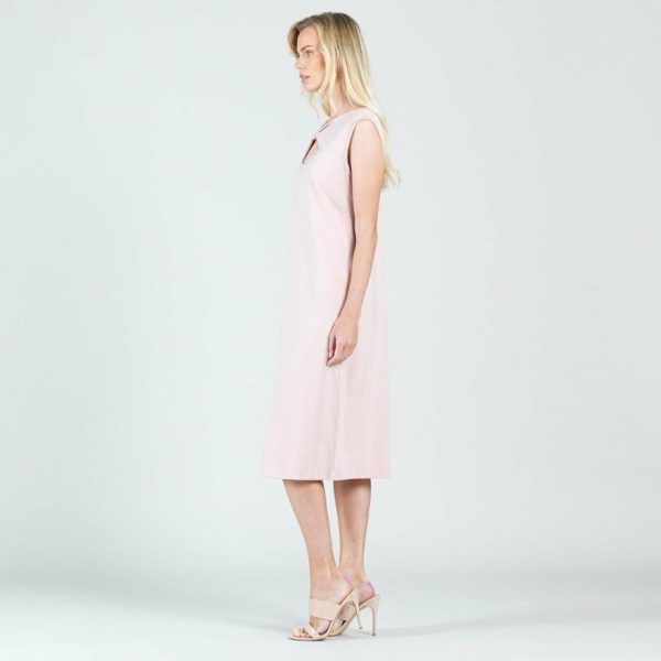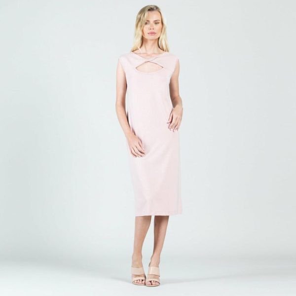 Others may try to imitate it, but our one-of-a-kind Modal Cotton Reversible Cut Out Midi Dress cannot be duplicated! This sleeveless dress features a high boat neckline, a charming back twist cut out, and a straight sheath silhouette with a figure-flattering midi hemline.