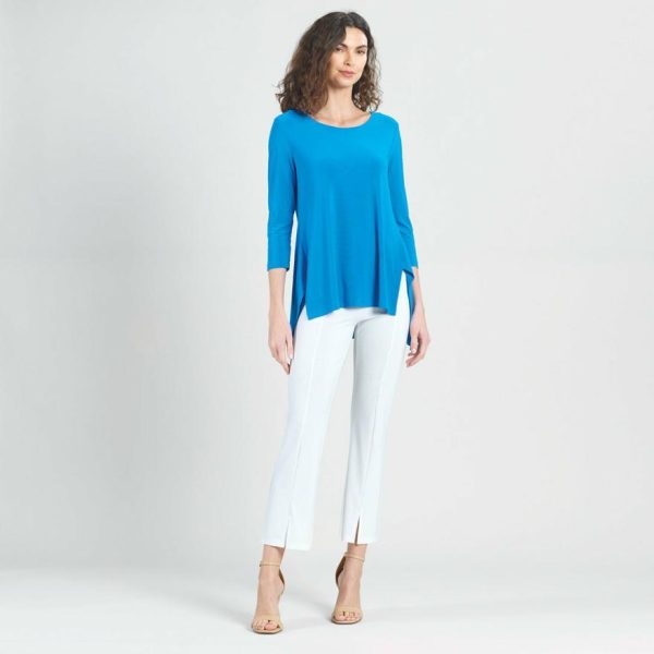 Our Parachute Hem Tunic is a fashion lifesaver, that takes your wardrobe to new heights! Featuring a round neckline, 3/4 length sleeves, and a side vent parachute hemline.
