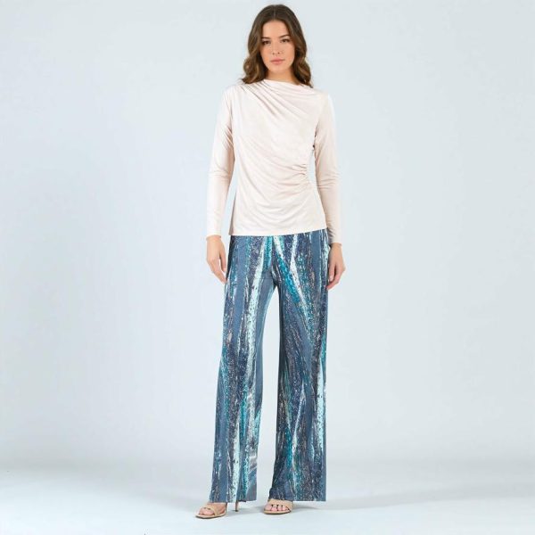 Our Peach Skin Knit Ruched Drape Top combines a flattering silhouette with an innovative design! This gorgeous top features a high asymmetrical neckline, long sleeves, and a ruched effect created by beautifully draped details that accentuate the natural figure.