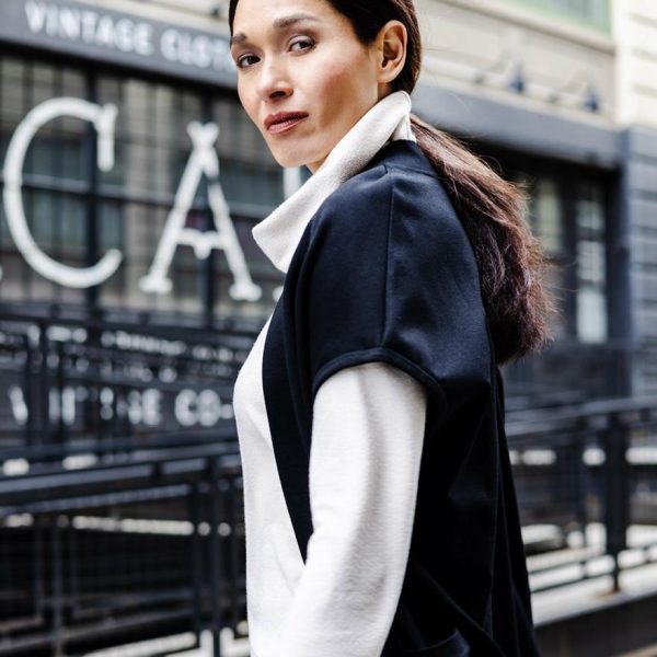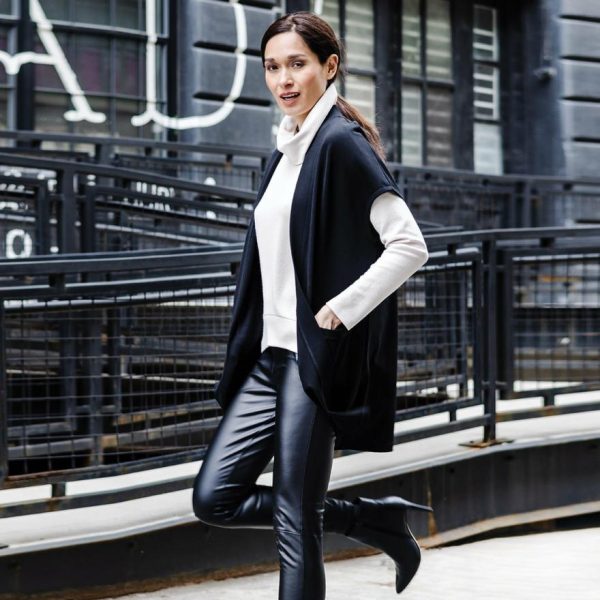 Women Ponte Knit – Cap Sleeve Pocket Vest – Black | Clara Sunwoo Jackets + Cardigans