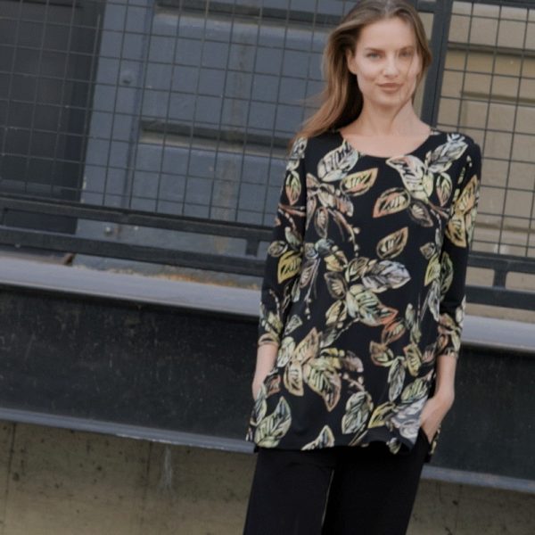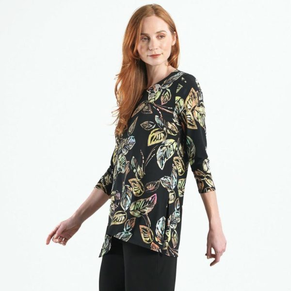 Embrace the beauty of nature and branch out in style with our Leaf Colorburst Side Vent Kerchief Hem Tunic! This tunic features a round neckline, 3/4 length sleeves, and a kerchief hemline with dual side vents that create a flattering silhouette.