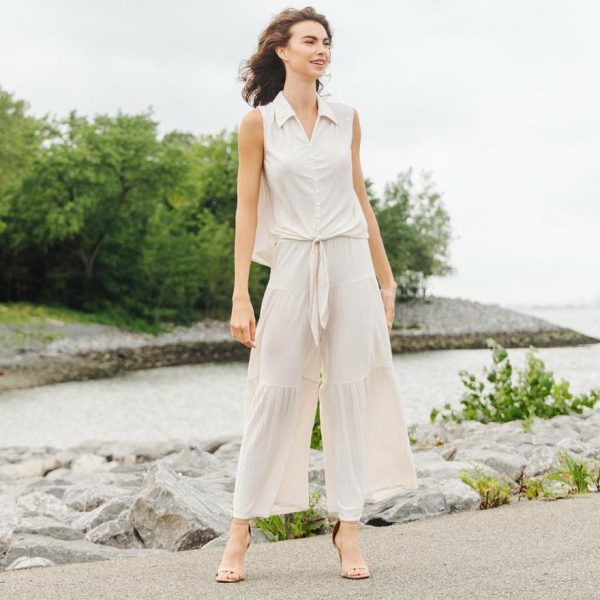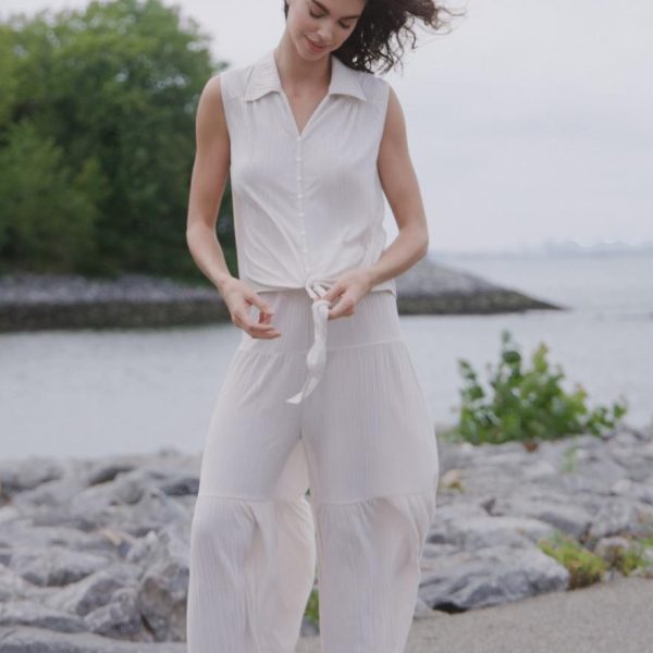 Our signature rayon-poly blend fabric provides a finish that is rich in texture while being soft, lightweight, and breathable with quick-drying properties. This delicate fabric offers refined durability with crinkled dimension for visual interest. Perfect for warm or transitional weather, you can pack it up and go with ease!