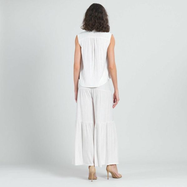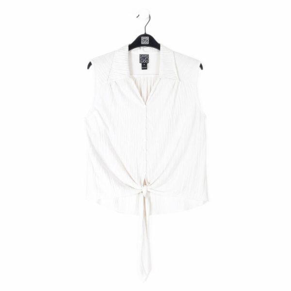 Looking for a style that is as modern as it is elegant? Our Soft Pleat Button Down Tie Hem Top is sure to tie your wardrobe together effortlessly! This sleeveless, bra-friendly top features a collared v-neckline with an 8-button down closure, front and back yoke seams, and an adjustable tie-front hemline for a customizable touch.