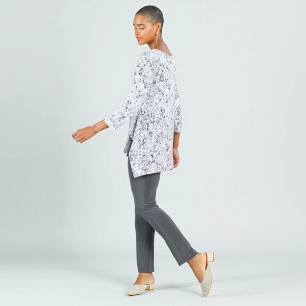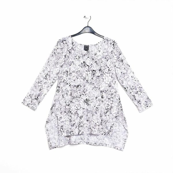 This tunic is designed to provide an elegant, yet relaxed fit. Cut true to size with a slightly flared silhouette, it also features an ample fit throughout the body but with a narrow bust, so customers may want to consider sizing up for comfort.