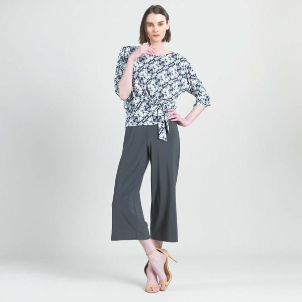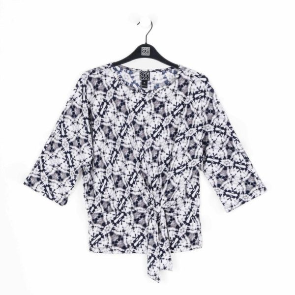 Adorn your fashion senses with our Circle Emblem Textured Side Tie Top! Featuring a high round neckline, elbow-length sleeves, and side tie detail, with a waist-hugging hemline, that displays an elegant blouson silhouette.