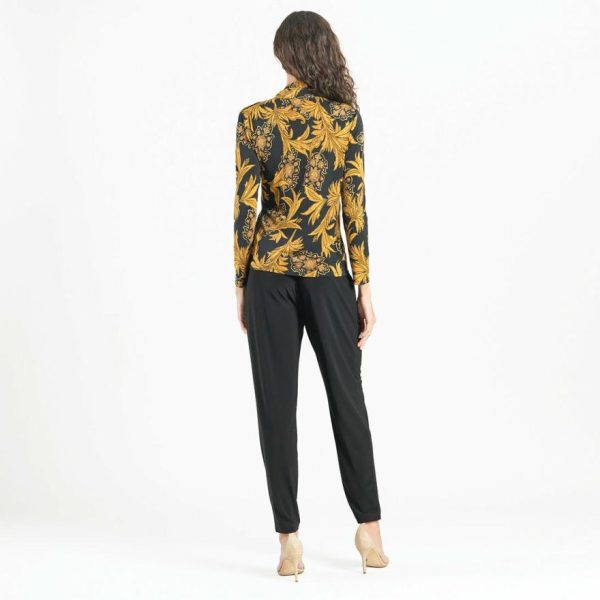 Looking for a luxurious, ornate pattern reminiscent of classical art? Well, look no further than our Baroque Paisley V-Neck Draped Pleat Top! This flattering top features long sleeves, a v-neckline with a draped pleat detail that creates a faux overlay that accentuates the figure, and a straight hemline.