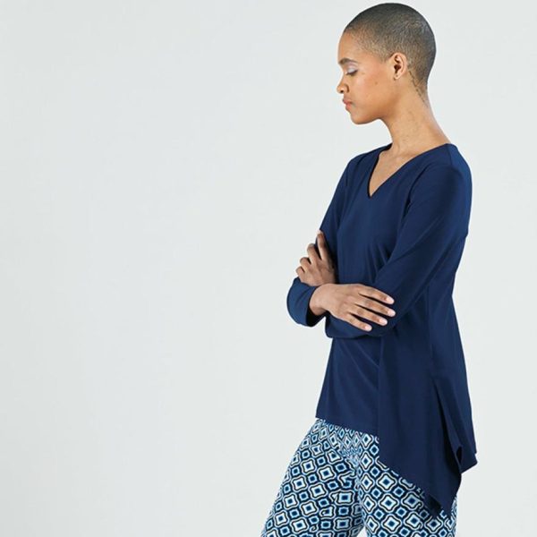 When all else fails, just go with the V-Neck Side Flow Top! Featuring a v-neckline, long sleeves, and an innovative, softly draped side-flowing hemline.