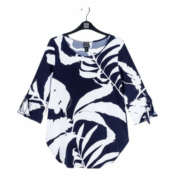 Elevate your wardrobe with our exquisite Abstract Branch Tie Cuff Curved Hem Tunic! This elegant tunic showcases 3/4 length sleeves with sophisticated tie cuff accents, a flattering scoop neckline, and a gracefully curved hemline that creates dual side vents with a beautifully flowing silhouette.