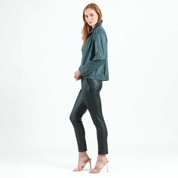 Discover your new signature jacket with our premium Liquid Leather Button Closure Pocket Jacket! This sophisticated piece features a luxurious soft-matte exterior with a smooth satin-like interior lining, complete with 6-button front closure and a stylish fold-over throat latch collar. The design includes practical 2-button cuff closures, functional rectangular panel side pockets, a tailored back yoke seam with elegant bottom side pleats, an adjustable button hem for personalized fit, and precision seamed stitching throughout.