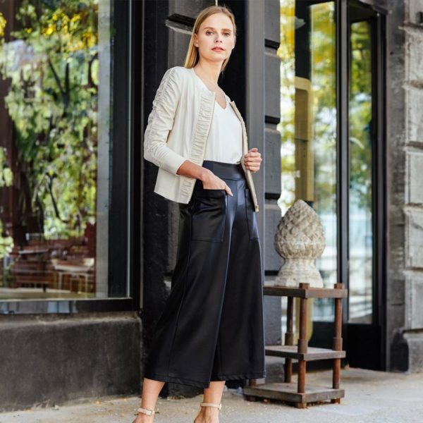 Discover our exclusive Liquid Leather Ruched Detail Jacket crafted from our premium signature stretch knit fabric, offering exceptional lightweight comfort and superior softness. The model is 5’9″ wearing Extra Small (4/6)