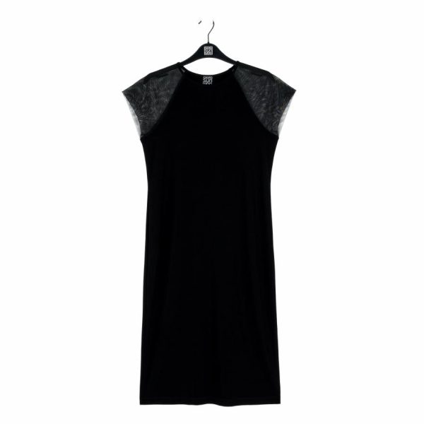 Elevate your wardrobe with our stunning Mesh Cap Sleeve Midi Dress that combines modern sophistication with effortless style. This chic minimalist design features a timeless round neckline, elegant mesh cap sleeve panels that add a contemporary edge, and a flattering midi length with a sleek straight silhouette that creates a polished, streamlined appearance.
