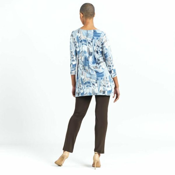 Experience the stunning beauty of our Mosaic Tile Textured Parachute Hem Tunic that looks even more exquisite in person! This elegant top features a classic round neckline, flattering 3/4 length sleeves, and a stylish side vent parachute hemline that adds movement and sophistication.