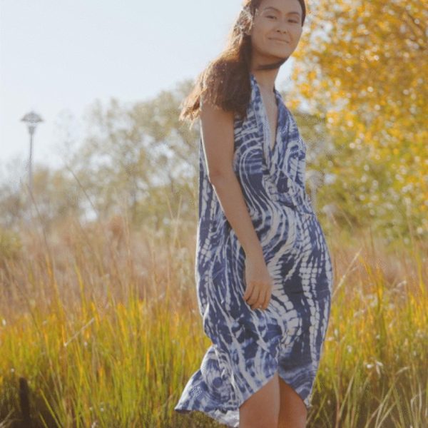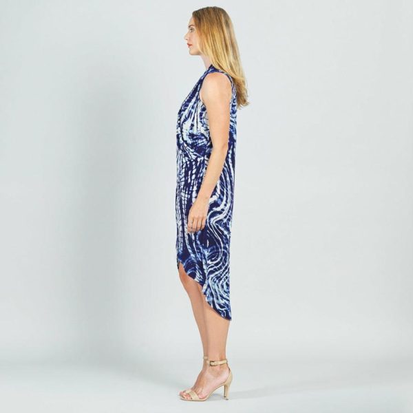 Discover our exquisite Swirl Wave Crepe Knit Crossover Tulip Hem Dress, designed to make a stunning impression. This sleeveless dress showcases an elegant crossover surplice neckline that drapes beautifully against your figure, accentuating your natural curves while flowing into a gracefully draped tulip hemline.