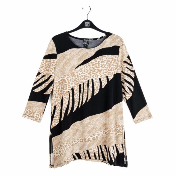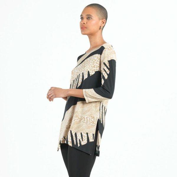 Discover your next wardrobe essential with our captivating Safari Patch Side Vent Kerchief Hem Tunic! This stunning piece showcases a sophisticated round neckline, elegant 3/4 length sleeves, and a distinctive kerchief hemline with dual side vents that deliver exceptional movement and a beautifully flattering fit.