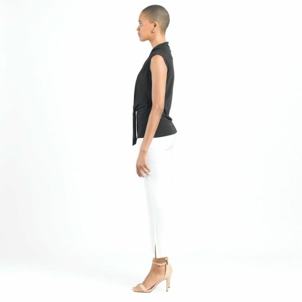 Our Sleeveless Center Front Tie Top delivers effortless sophistication with its clean, modern design. This flattering sleeveless silhouette features a graceful v-neckline, elegant vertical center seam, and an adjustable front waist tie that creates beautiful draping to enhance your natural shape.