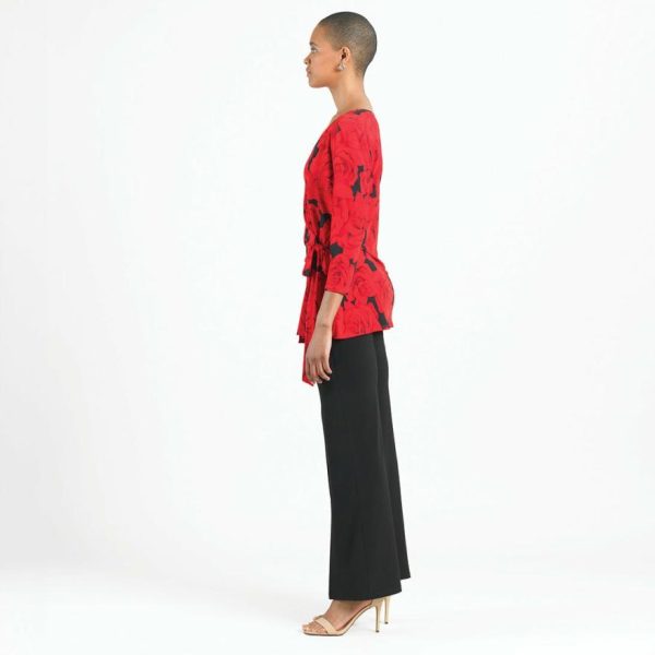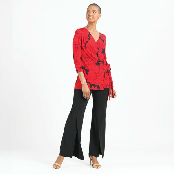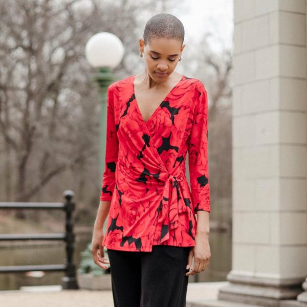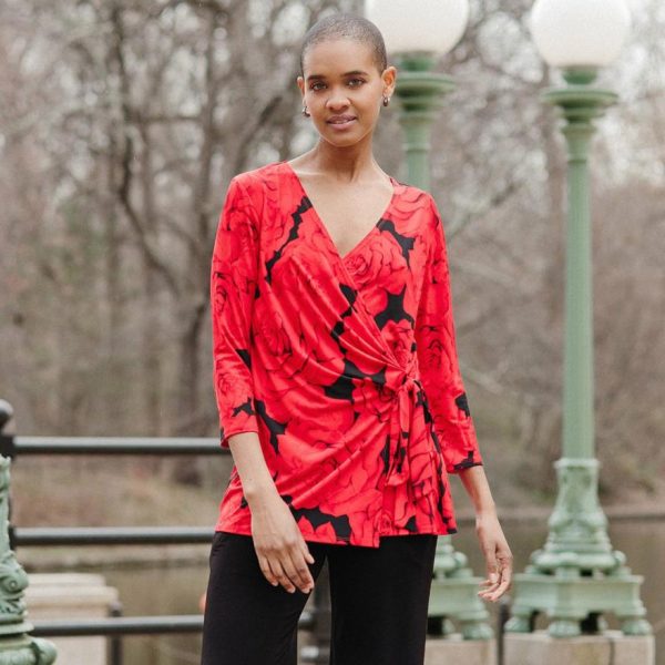Experience timeless elegance with our Rose Floret Surplice Faux Wrap Tunic! This stunning piece showcases a sophisticated surplice neckline, flattering 3/4 length sleeves, and an elegant faux wrap design with a chic side tie accent that creates beautiful shape definition.