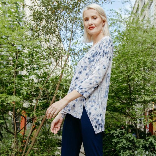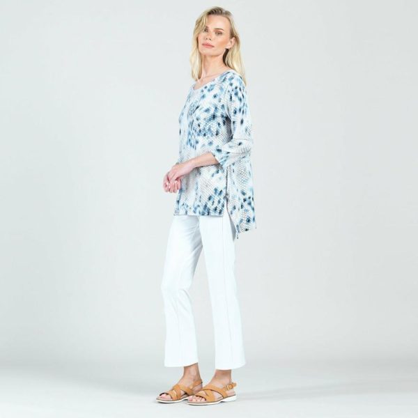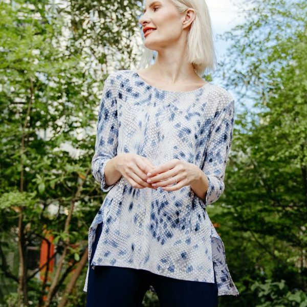Discover the captivating elegance of our Python Textured Parachute Hem Tunic! This stunning top showcases a flattering round neckline, versatile 3/4 length sleeves, and a sophisticated side vent parachute hemline that adds movement and style.