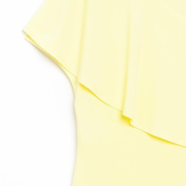 Elevate your style with our stunning Ruffle Overlay Top that adds a touch of elegance to any outfit! This beautifully designed top features a flattering round neckline, chic cap sleeves, an eye-catching ruffle overlay detail, a diagonal princess seam that travels from the top right shoulder to the bottom of the left bust, and a straight hemline for a polished finish.